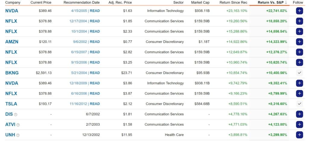 In addition to the two new recommendations each month, both services offer a ranking list that highlights the top 10 stocks in the portfolio to double-down on right now. These lists can be helpful if you have extra money to invest in between new recommendations.